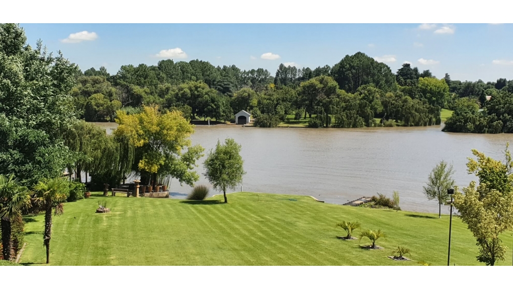 This home is both majestic and iconic in its own right. Position and functionality all in one. Ideal to entertain on weekends or to live in on a permanent basis. The estate consists of only three other owners and one of the very few estates on the Vaal that offers you your own private river frontage. The common property at the back includes +/- 16000m2 including the pond, water purification plant, caretaker cottage, and new boathouse complex in the process of being built. The home is energy efficient with double glazed windows and offers ample living and entertainment areas inside and out. The riverfront is complete with slipway, Jetski-Beach, and Covered Jetty for your boat. North-facing and situated on Millionaire's Mile. This home is cast in concrete (no bricks), plinths connected underground, concrete roof-structure, and architecturally designed to captivate and mesmerize for a lifetime. This home is priced to sell so make an appointment for a private viewing with us now.